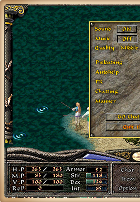 | 选择按钮去前面有三句话,是游戏的特点之一,是购买物品时帮助玩者讲价的部分.物品的价格会根据所选说话内容语调及讲礼貌的程度或升或降. 如果要销售物品,先在自己的物品窗口中把物品拖动到商店主人前面,那么商店主人就会根据不同物品付给一定金额. |