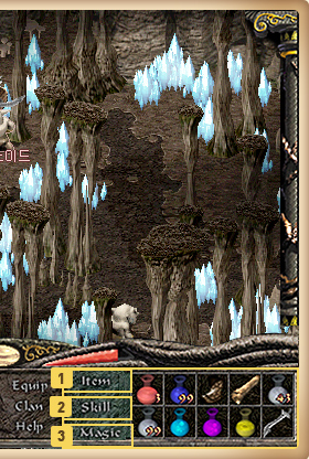 | 快捷魔法窗口的每个格也有相应的数字,只要按键盘上相同的数字键就可以选择相应的魔法.在某个魔法图标上面点击鼠标右键也有同样效果.选定魔法/技术后在目标物的上面点击鼠标右键时此目标物就能够直接使用魔法/技术. |